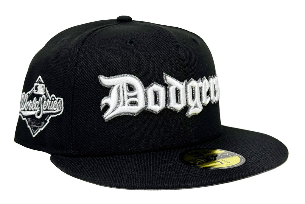 Los Angeles Dodgers Fitted New Era 59Fifty 2025 WS Old English Black Cap Hat Grey UV