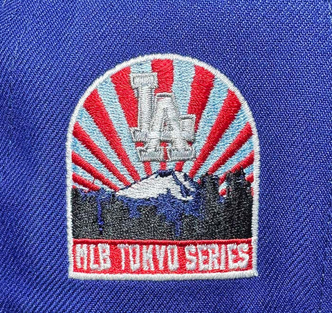 Los Angeles Dodgers Fitted New Era 59Fifty Tokyo Series Sunrise Patch Blue Black Hat