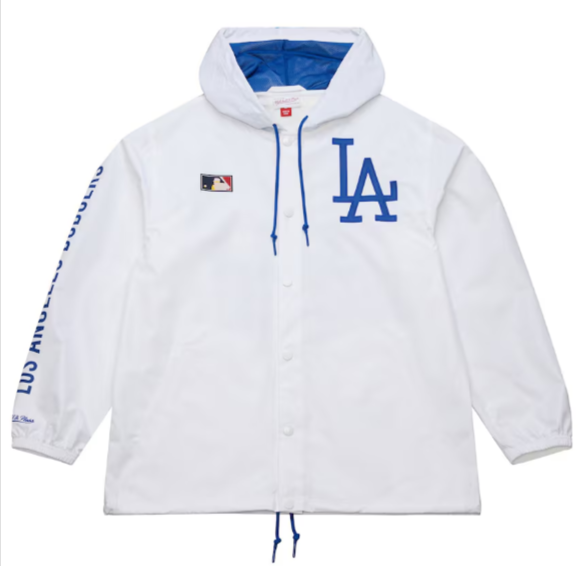 Los Angeles Dodgers Mens Mitchell & Ness Vintage Full-Snap Coaches Hooded Jacket White