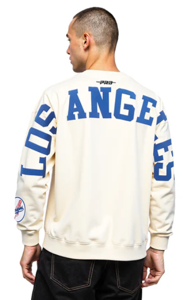 Los Angeles Dodgers Mens Sweatshirt Pro Standard Drop Shoulder Wingspan Crew Neck Eggshell