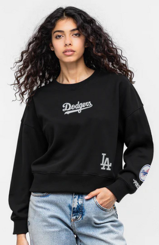 Los Angeles Dodgers Womens Crop Sweatshirt Pro Standard Wingspan Pullover Crewneck Black