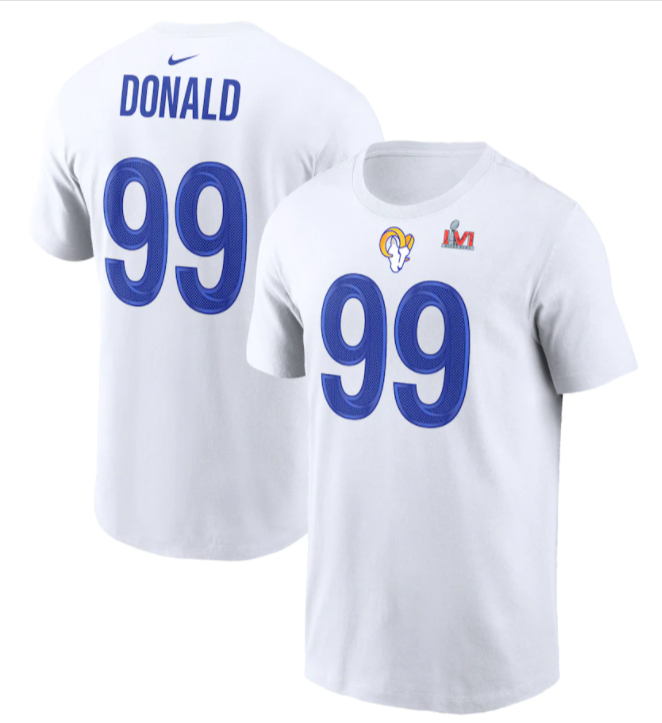 Los Angeles Rams Mens T-Shirt Super Bowl Aaron Donald Name & Number White