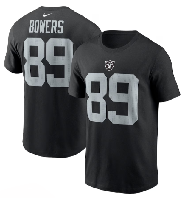 Raiders Mens T-Shirt #89 Brock Bowers Player Tee Black