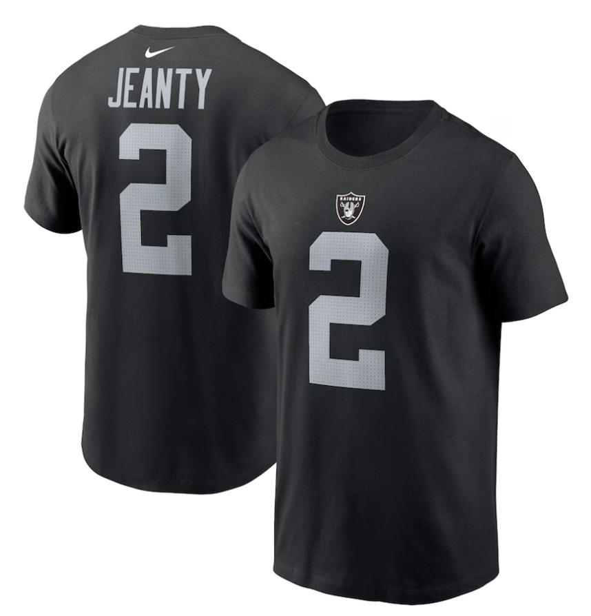 Raiders Mens T-Shirt Ashton Jeanty #2 Black Tee