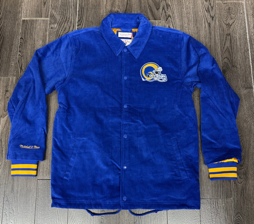 Los Angeles Rams Mens Jacket Mitchell & Ness Royal Off the Bus Corduroy Coaches Full-Snap