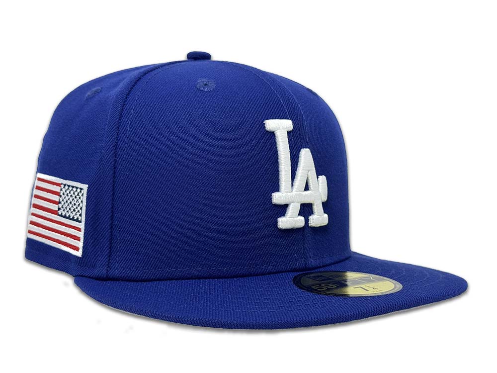 Los Angeles Dodgers Fitted New Era 59Fifty USA Flag Blue Cap Hat Grey UV